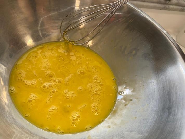 Na primeira foto, ele frito e depois com o suco e açúcar.