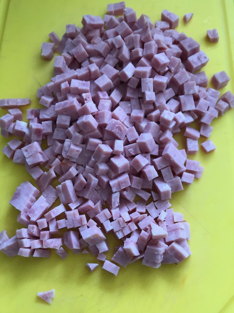 Com uma boa faca, corte em fatias o lombo e o abacaxi.