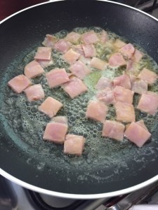 Frite a cebola, alho, temperos, o alho poró e junte o frango em cubinhos.