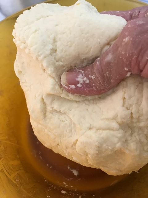 Coloquei em uma travessa, salpiquei cheiro verde sobre ela e coloquei um pouco do requeijão para ir molhando devagar.