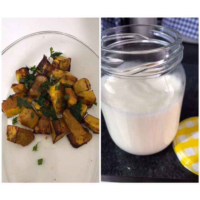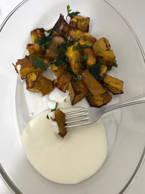 Bem, aí eu tinha uma abóbora cabotiá e resolvi fazer para ter um aperitivo completo.