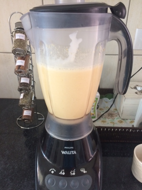 Coloque os ingredientes em liquidificador e bata bem (menos o queijo).