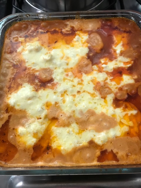Cubra com queijo e leve ao forno para gratinar.