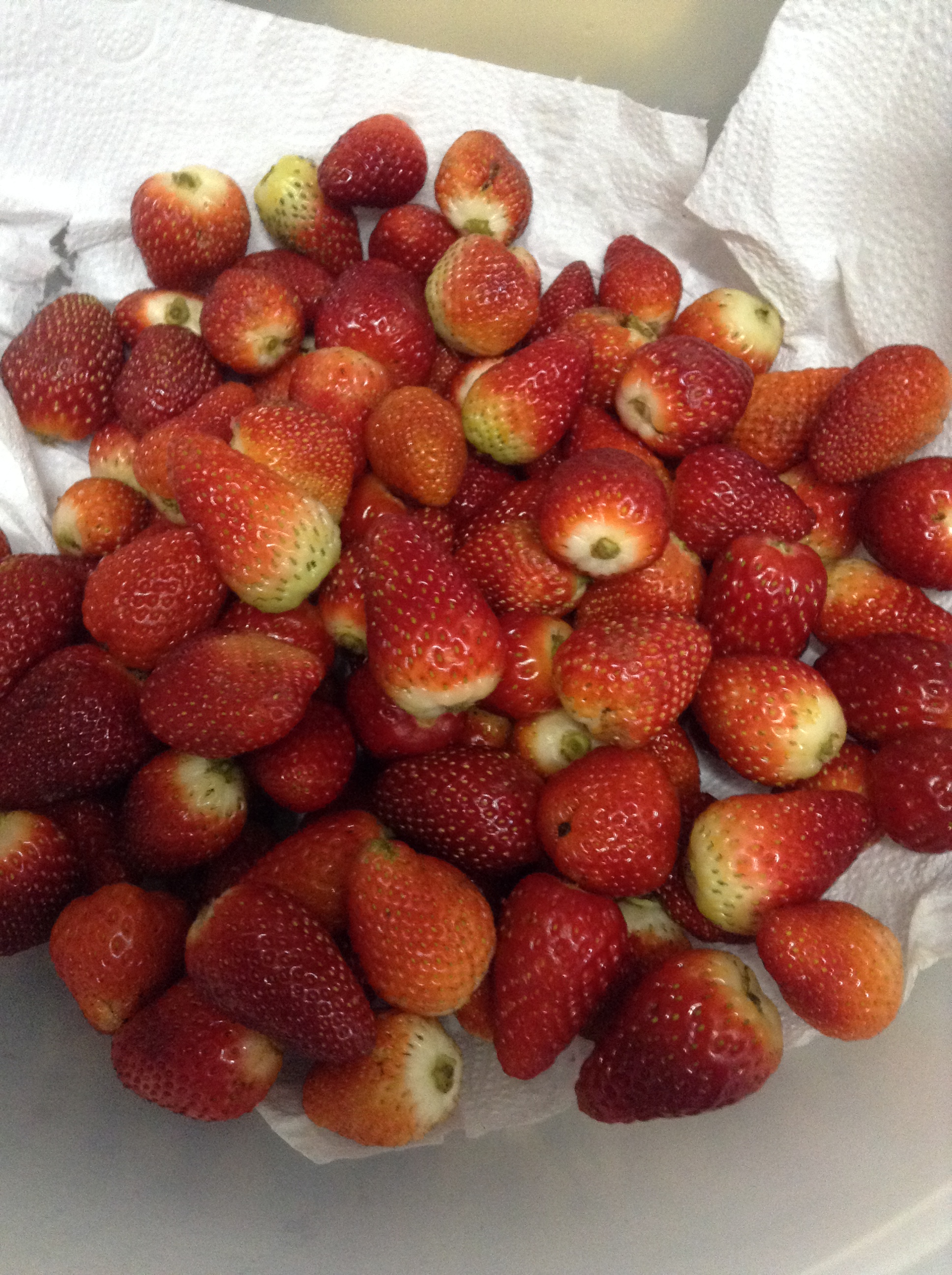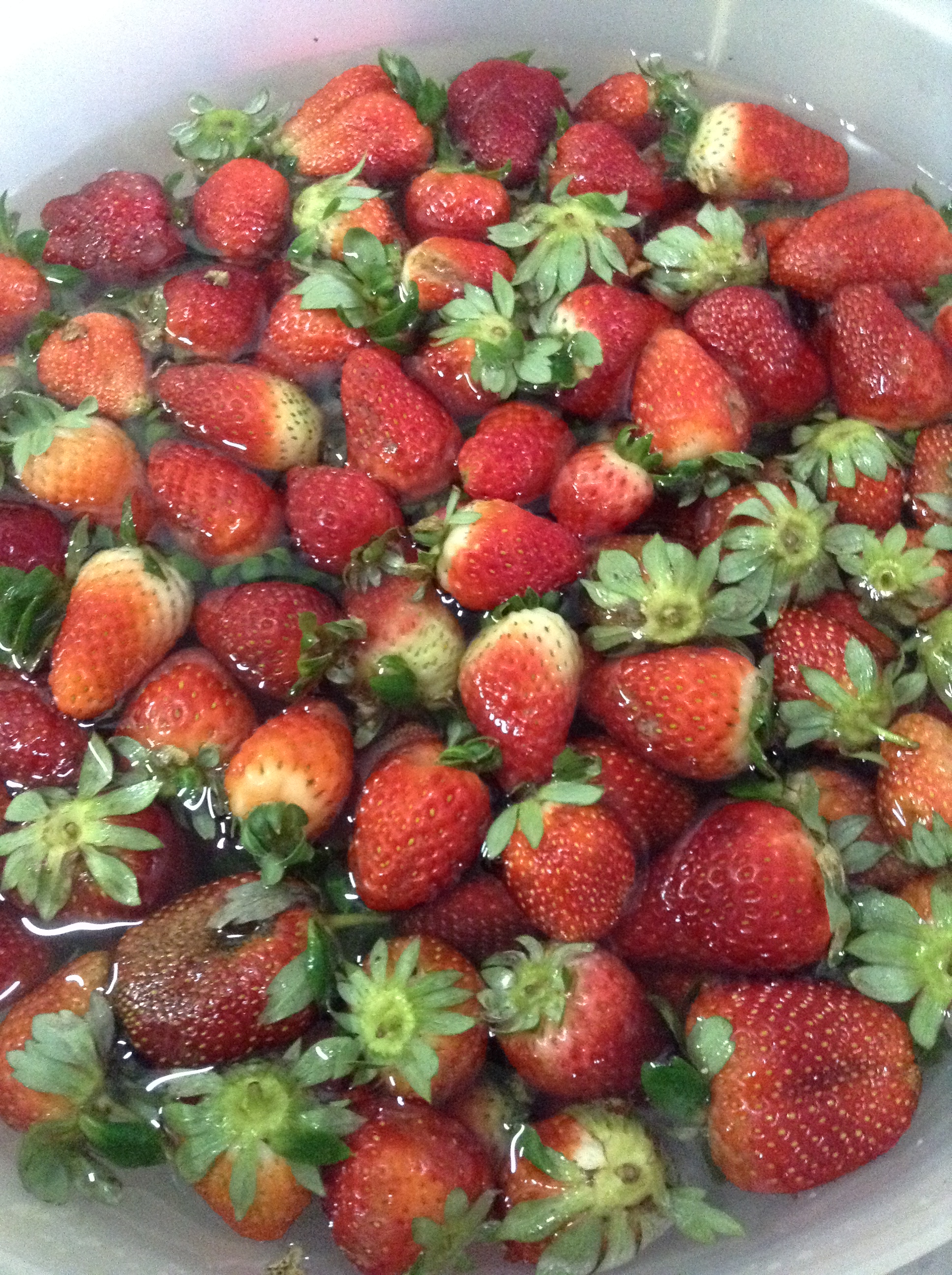 Como eu tinha morangos em casa, usei com uma xícara de açúcar.