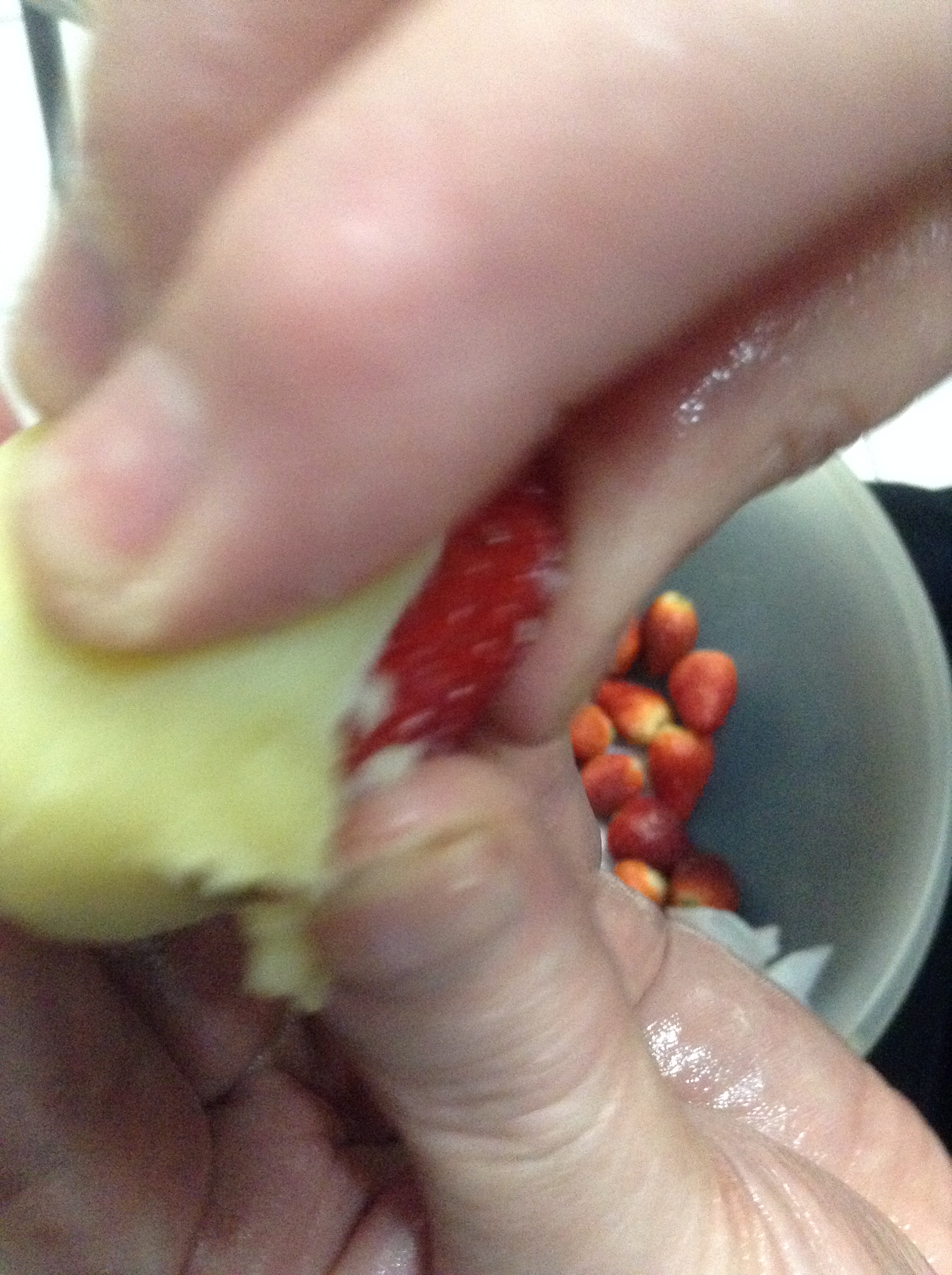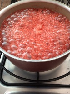 A espuminha rosada que forma em cima, pode ser retirada e logo que os morangos estiverem macios, retire e reserve.