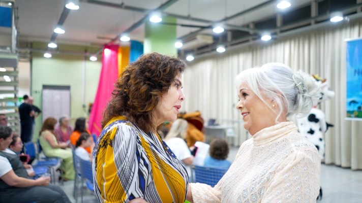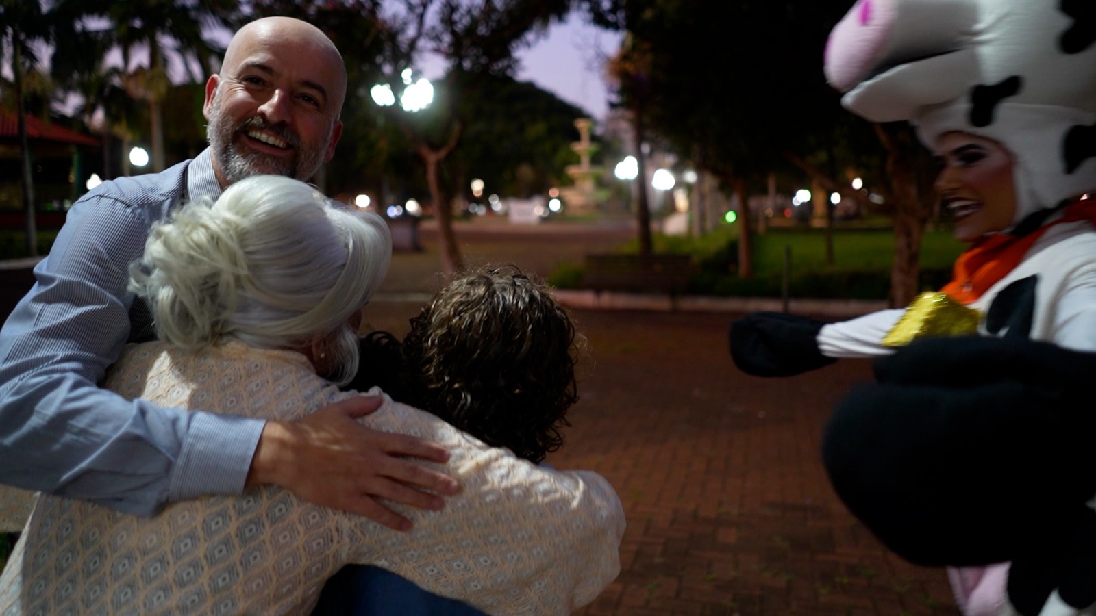 Recebendo a primeira dama da cidade, minha amiga, Hosana, que falou palavras lindas sobre mim.