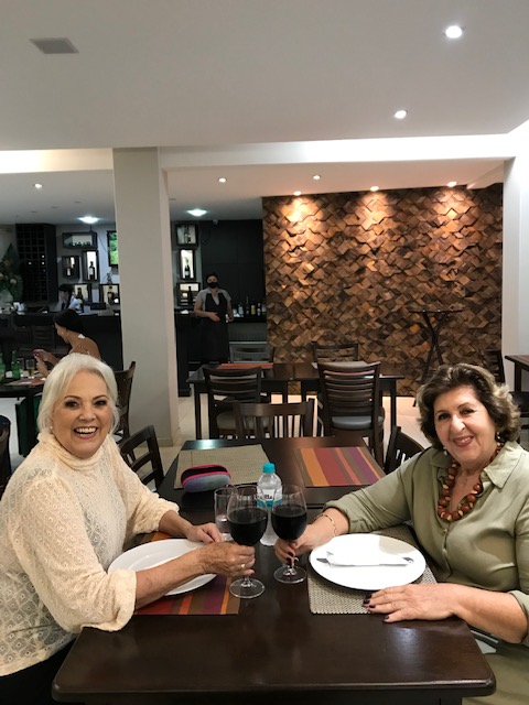 Na foto abaixo estou com a amiga de sempre, Regina e, como sempre, brindando!