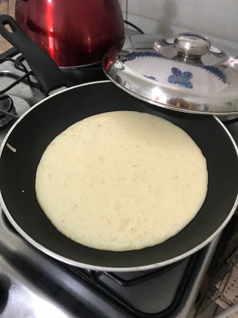 Leve uma frigideira ao fogo e despeje toda a massa nela.