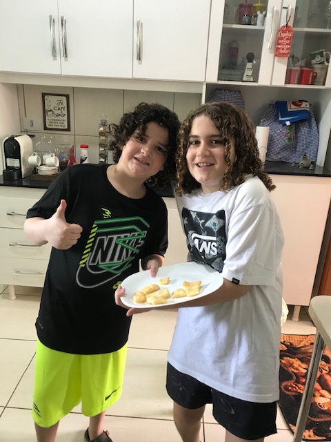 Esses são meus netos: Dani e Cesinha que vieram almoçar comigo nesse domingo e me ajudaram fazer. Super gostaram, pois quando me preparei para tirar a foto, já tinham comido quase tudo!