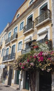 ( Arquitetura de Lisboa, casarios antigos e flores nas janelas colorem o outono europeu).
