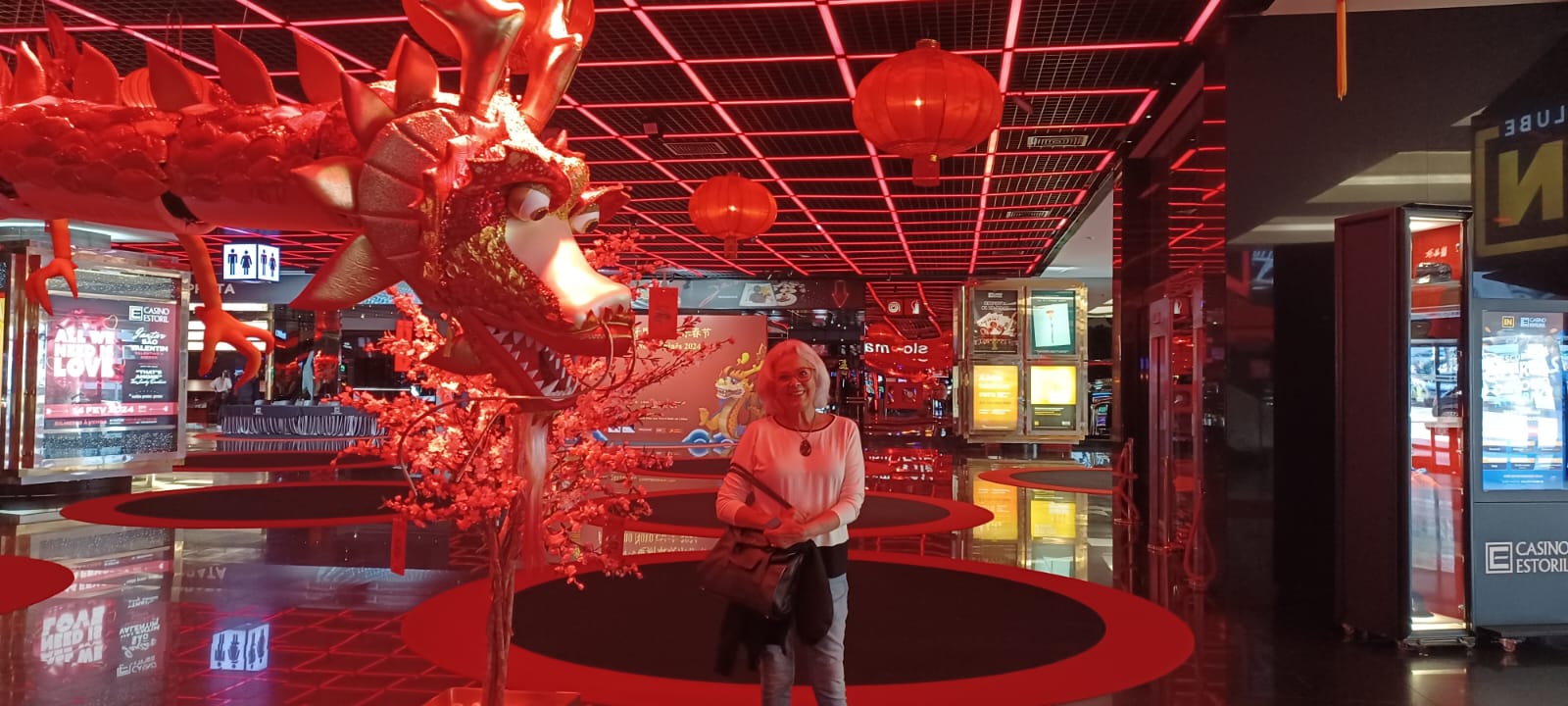 É enorme! Ficamos andando na parte inferior onde tem centenas de máquinas slots e nem chegamos a ir à parte superior onde ficam as roletas, etc.