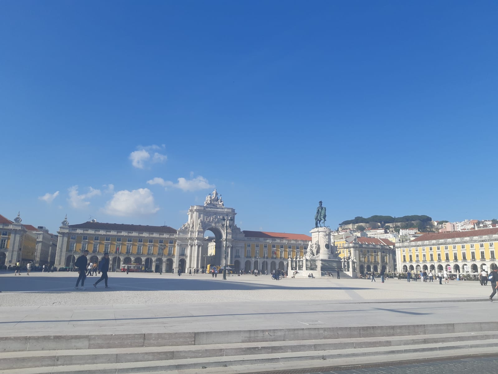 Antes o que só vira em fotos, foi me aparecendo ao vivo e a cores: a Praça do Comércio, o Arco da Augusta, o Elevador de Santa Justa, a Baixa Chiado.