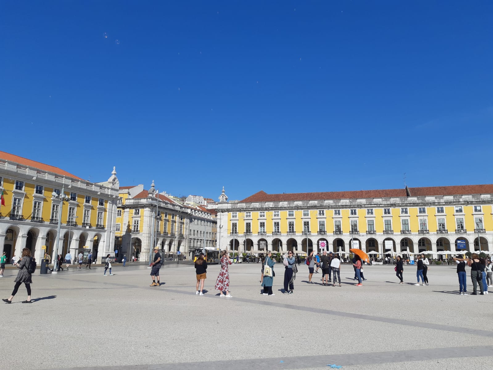 ( Um dos lugares mais procurados pelos turistas, a Praça do Comércio estava vazia para um final de semana).
