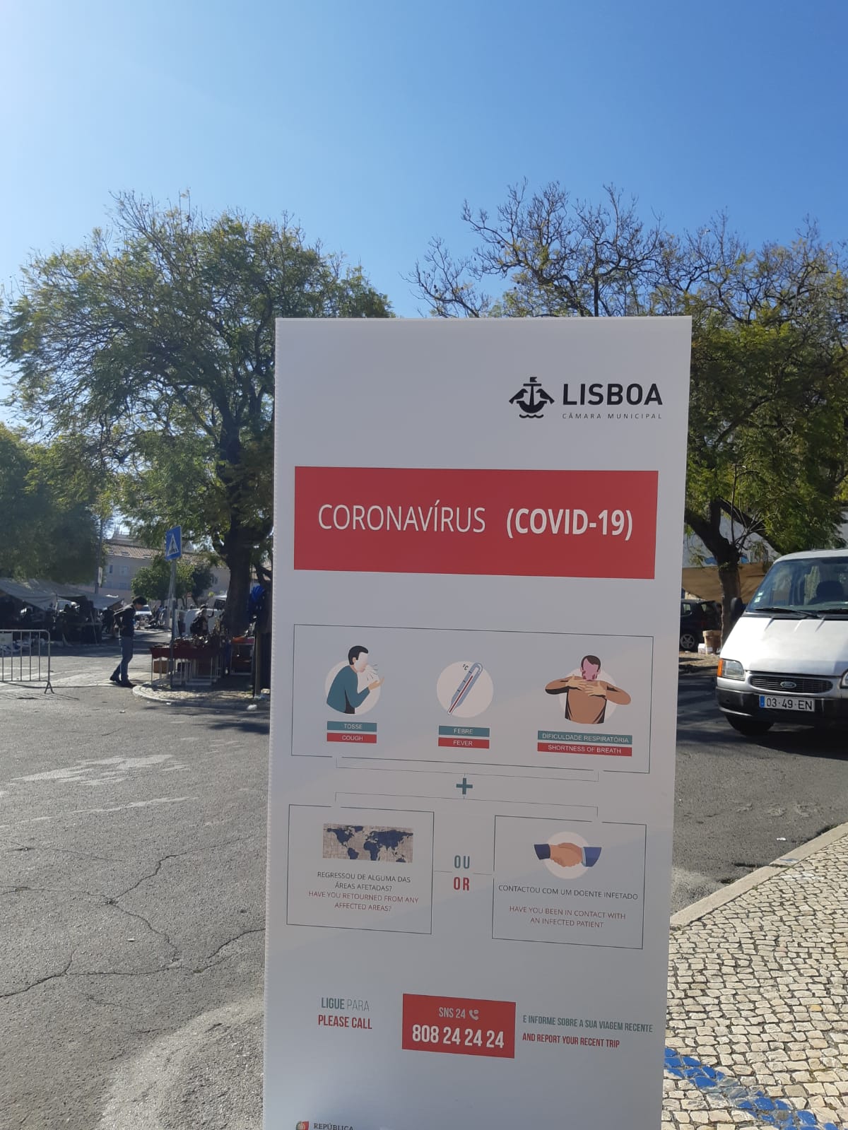 (Em Alfama, um aviso com os cuidados básicos sobre o Covid-19).