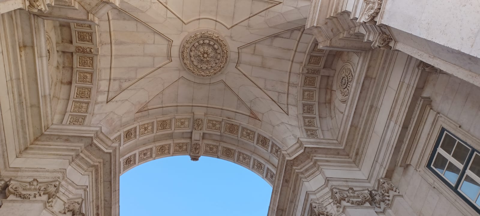 O Arco da Augusta está situado na parte norte da Praça do Comércio e sobre a Rua Augusta e olhando para cima é que vemos sua grandiosidade!
