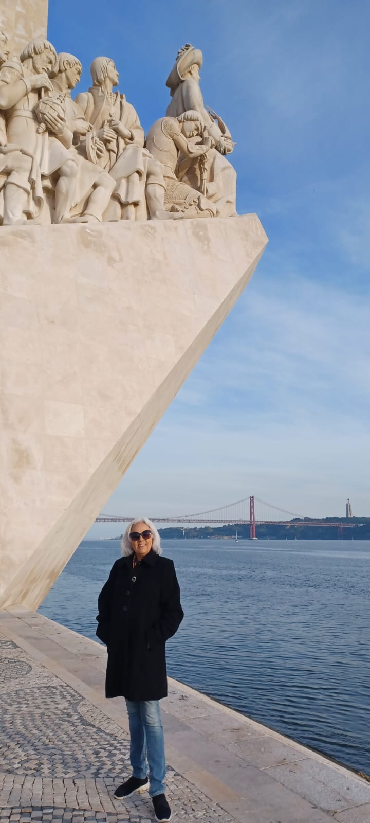Padrão dos Descobrimentos uma estrutura gigante (olhem como fiquei pequenina perto dele) em formato de caravela e que representa a expansão ultramarina portuguesa, o espírito aventureiro e a determinação dos navegadores.