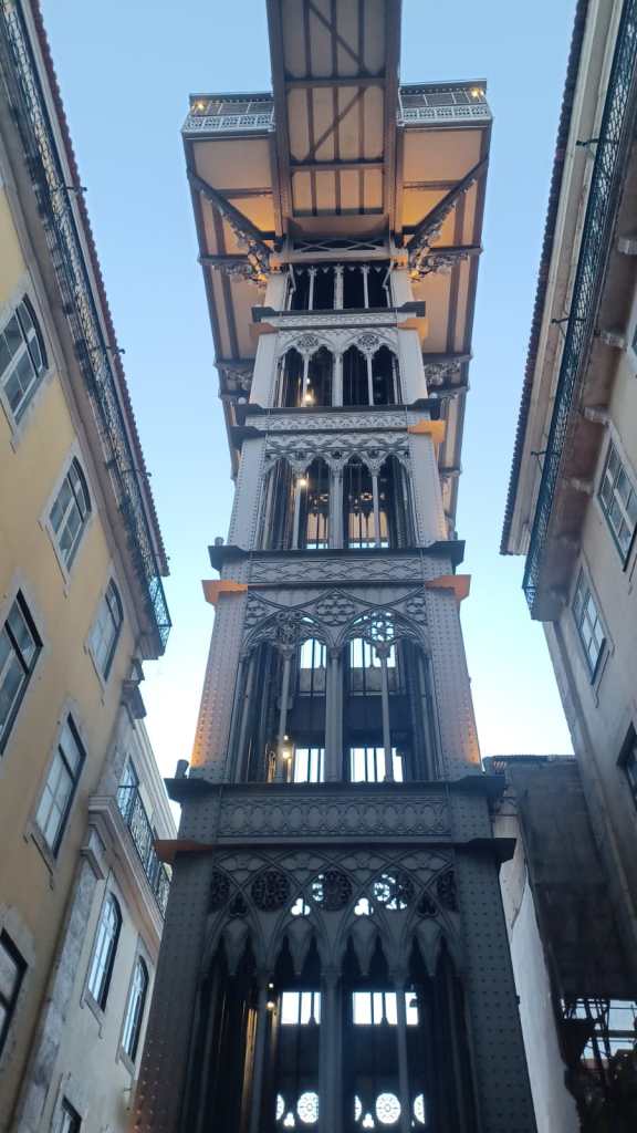 O Elevador de Santa Justa é composto por uma torre metálica onde circulam duas cabinas, e por uma passadeira que liga o piso superior à zona do Carmo. Sempre que passávamos por ela, parávamos para ouvir cantores que se revezavam e eram ótimos!