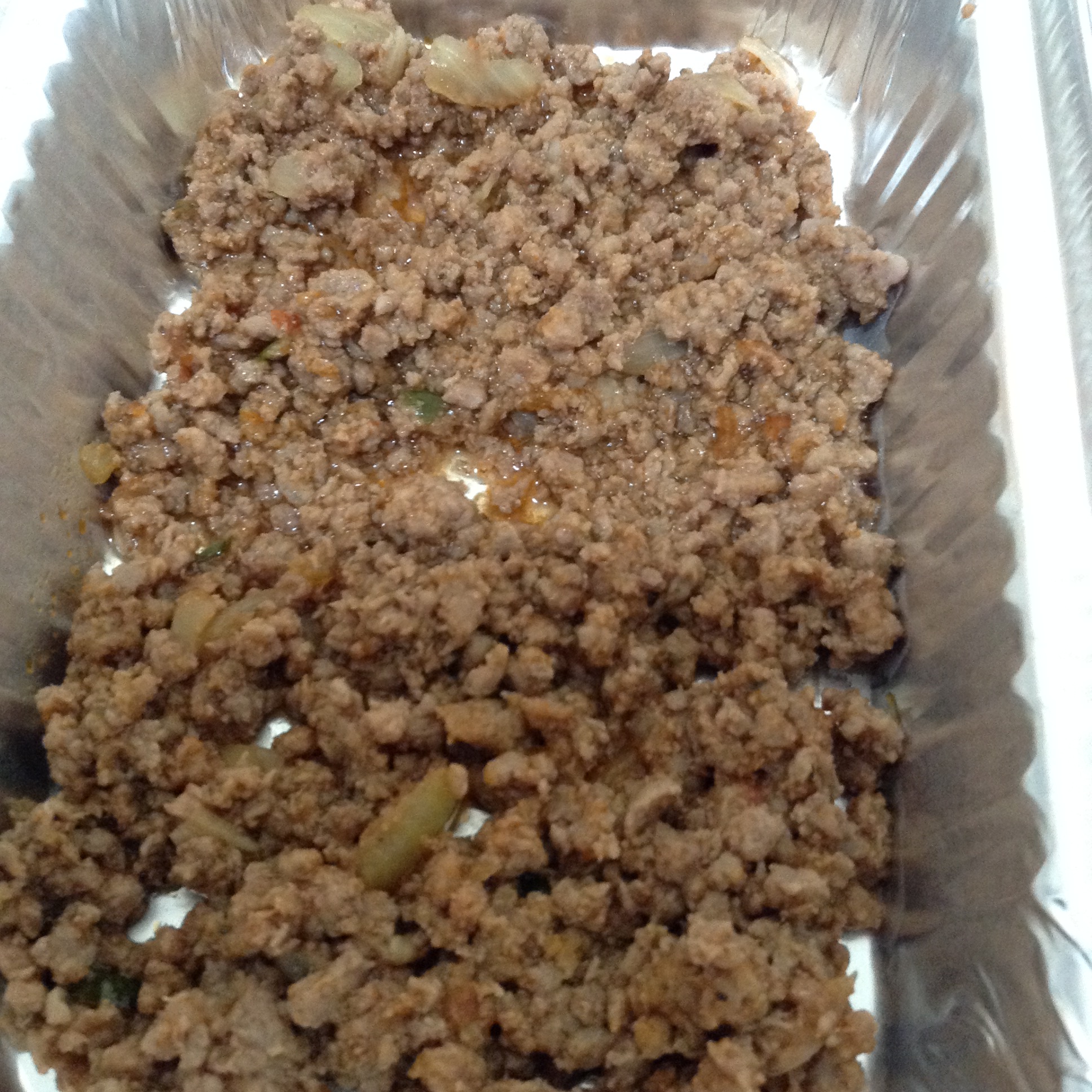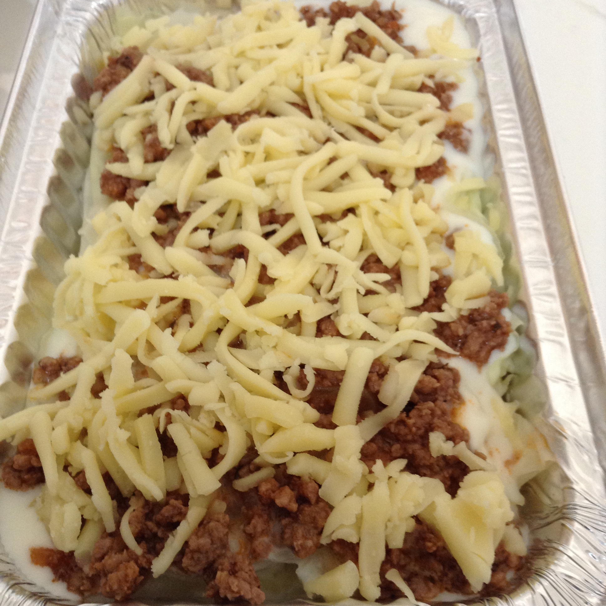 primeiro os pastéis, depois o frango com molho e bastante queijo ralado por cima e vai fazendo as camadas!