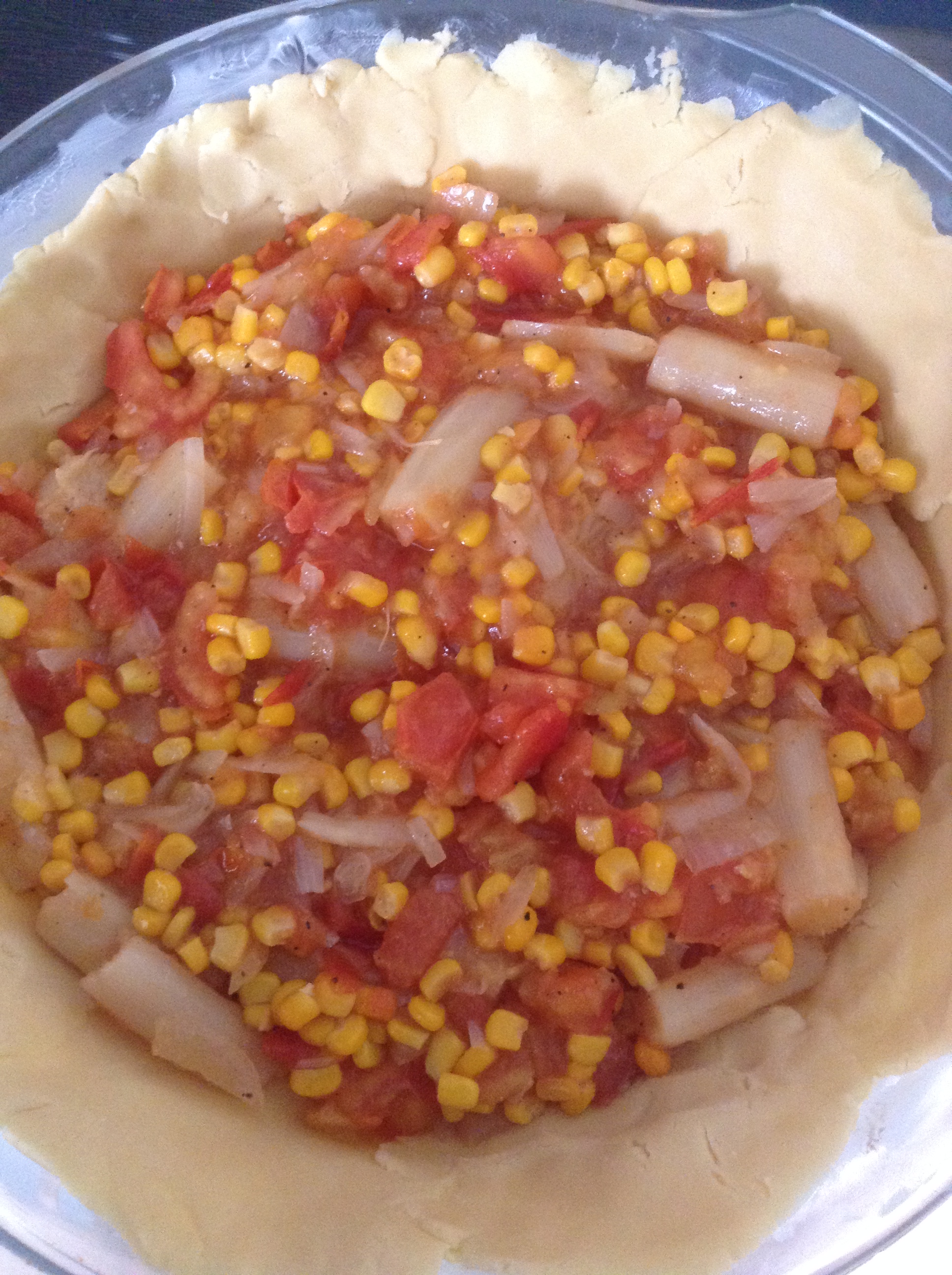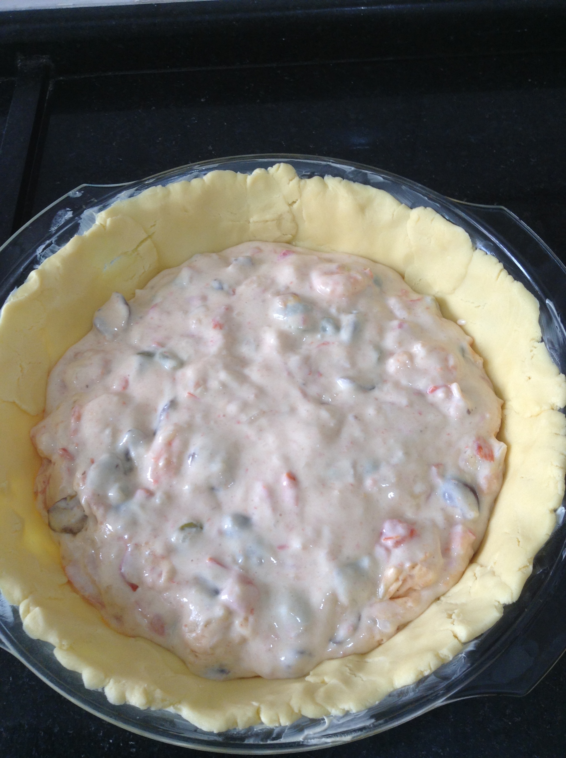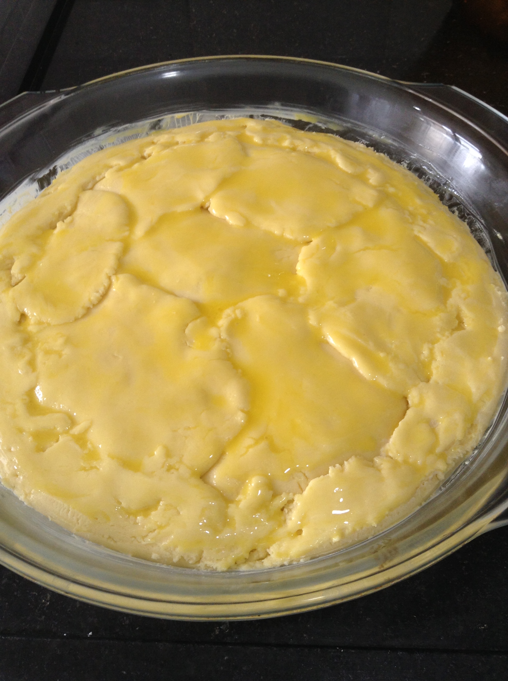 Unte uma forma e coloque metade da farofa, apertando bem.