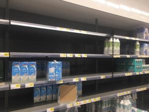 Nos supermercados há muitas prateleiras vazias, mas a reposição é feita diariamente. Houve um certo pânico, mas quando as pessoas perceberam que se não fizerem estoque não vai faltar, os ânimos se acalmaram.