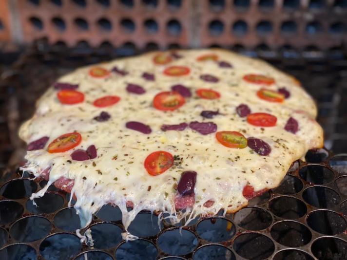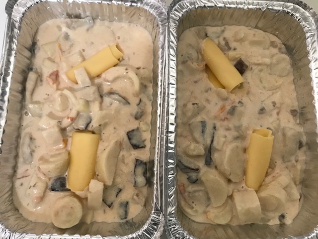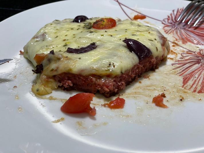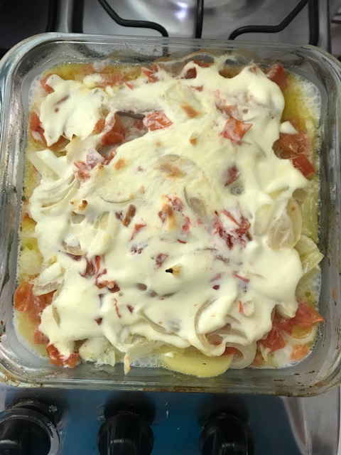 Por último, joguei muito queijo muçarela por cima e levei ao forno para gratinar.