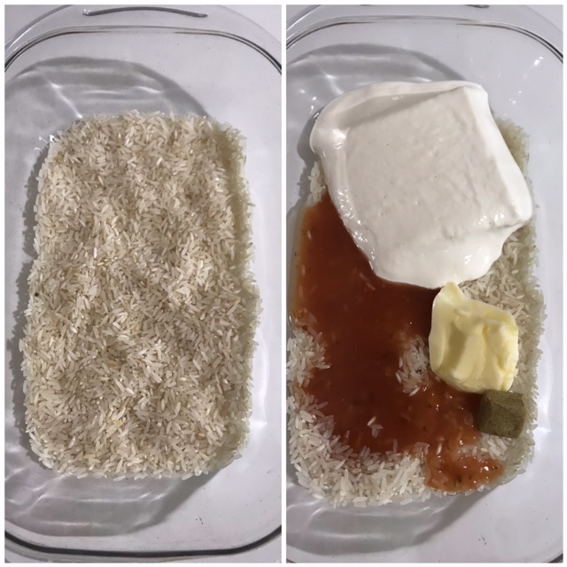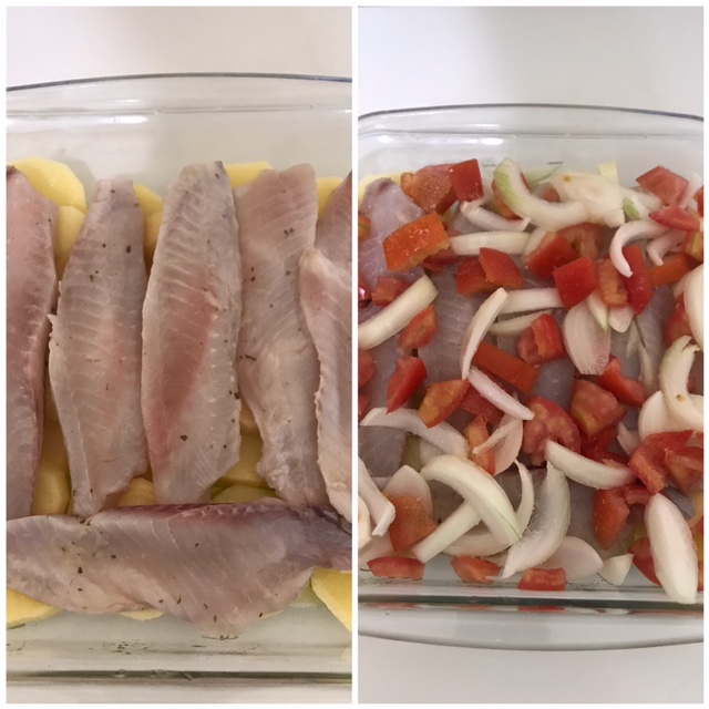 Em seguida, coloquei os filés por cima.