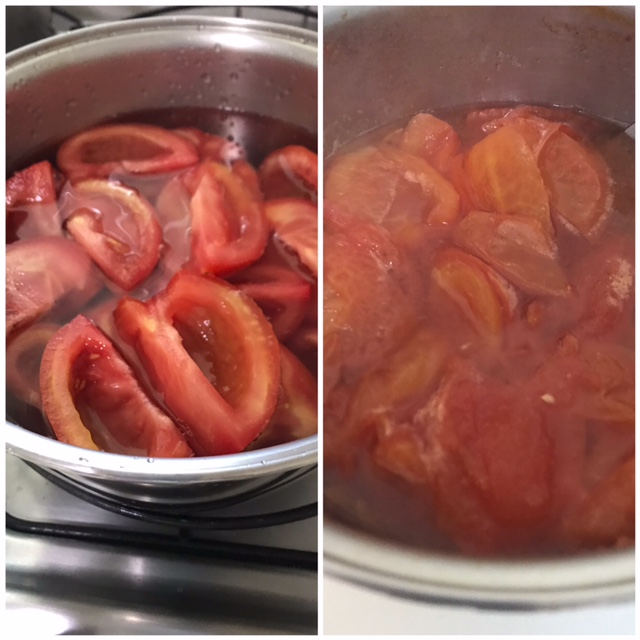 Cortei um tomate em fatias e dispus sobre os filés, colocando mais folhas de manjericão e alecrim.