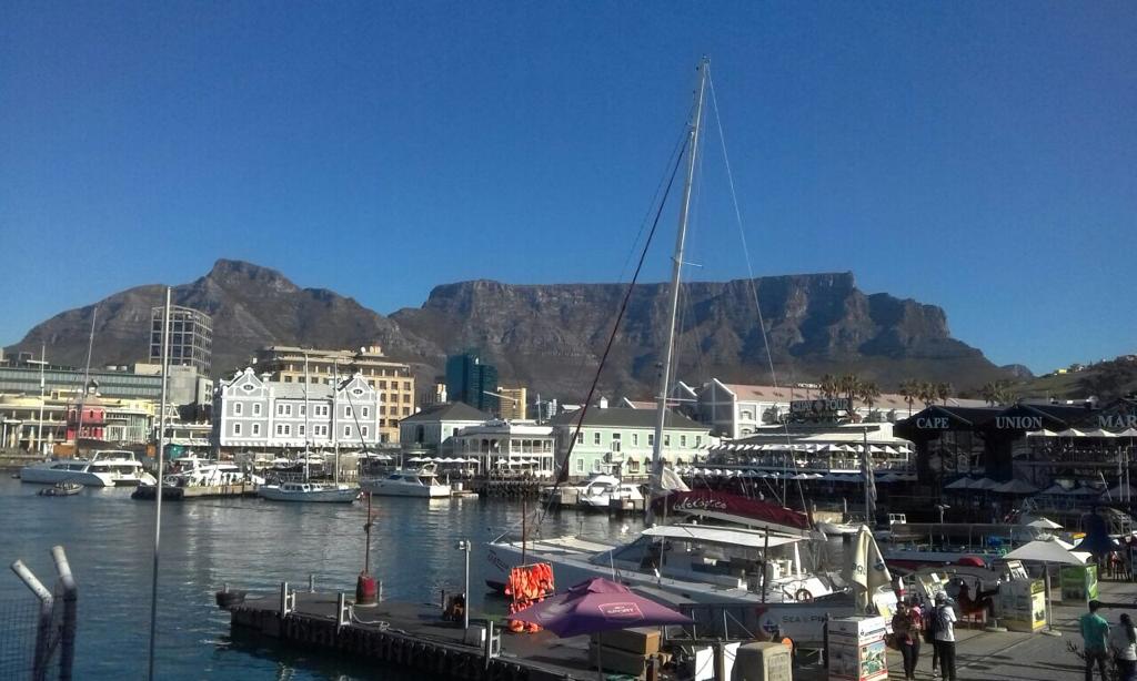 Aqui, uma vista do cartão postal da cidade que tem tanta beleza que chega aimpressionar: WATERFRONT com a famosa TABLE MOUNTAIN ao fundo!