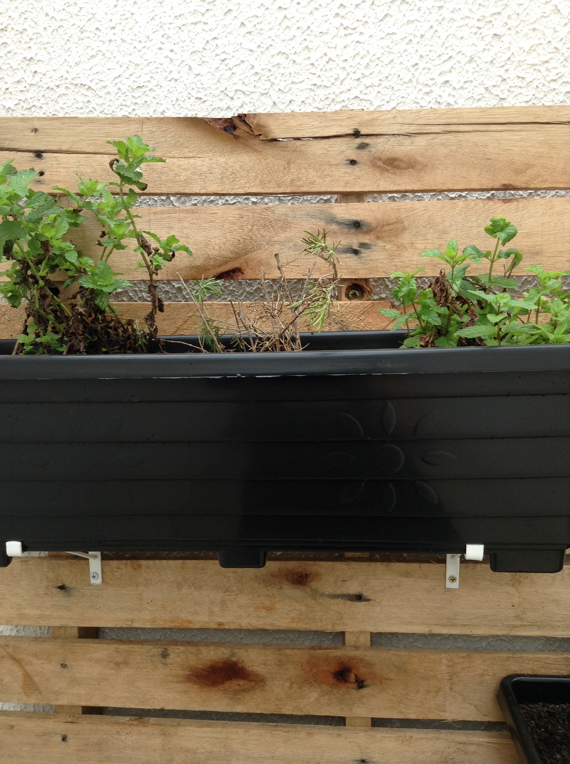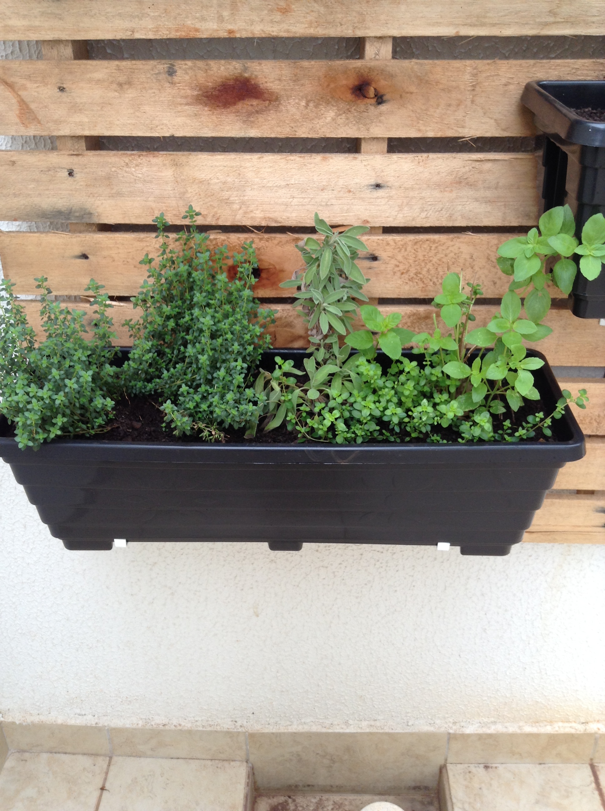 Lá atrás, no quintal também são dois pallets: um que quando abro a janela do meu quarto, lá está ele como a sorrir dando bom dia.